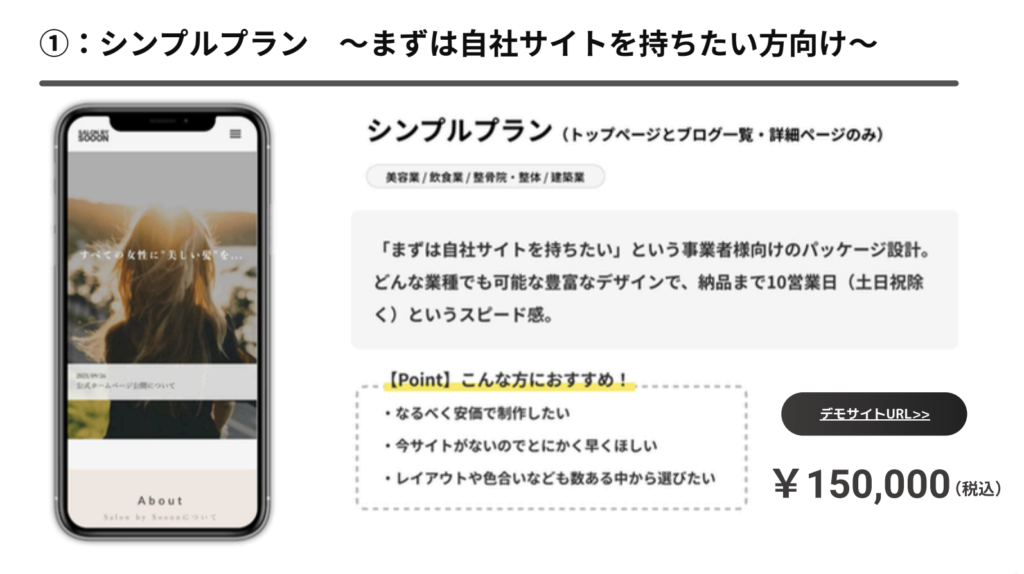 - シンプルプラン 〜まずは自社サイトを持ちたい方向け〜